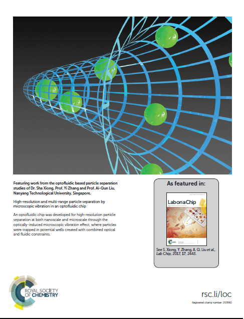 56. Y. Shi, S. Xiong*, L.K. Chin, Y. Yang, J. Zhang, W. Ser, J.H. Wu, T. Chen, Z. Yang, Y. Hao, B. Liedberg, P.H. Yap, Y. Zhang* and A.Q. Liu*​, High-Resolution and Multi-Range Particle Separation by Microscopic Vibration in An Optofluidic Chip, Lab on a Chip, 2017, 17, 2443-2450 (Cover Page Article)