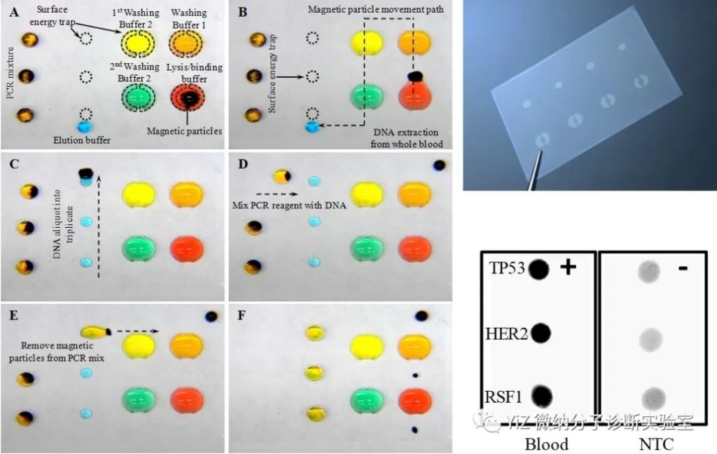 张翼率先开展了磁性数字微流体应用于现场即时检测的研究工作。磁性数字微流体技术克服了传统连续微流控在进行多相生化分析中面临的挑战,因此更加适合现场即时检测。磁性数字微流体系统以液滴作为生化反应器,所有的流体操作通过使用磁粒子或者其他微型磁性工具控制液滴的移动、合并及分离来实现。磁性数字微流体完全避免了微流泵、阀及连结装置等微流组件,因此是适用于现场即时检测的理想平台。